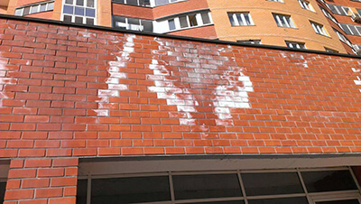 Гидрофобизация фасада - это придание водонепроницаемых свойств обработанной поверхности фасада с целью гидроизоляции. Гидрофобизация защищает кирпичные и бетонные фасады от высолов и загрязнений, повышает атмосферостойкость и трещиностойкость, придает большую прочность штукатурке и продлевает жизнь бетону, защищает от грибков и биозаражения.